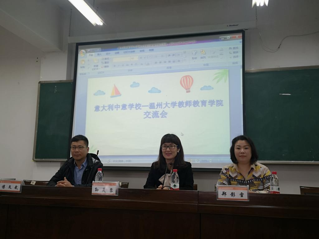 讲座中,国际实验班班主任刘育光老师感谢教师澳门六合彩预测 孙芙蓉院长出席本次讲座,并介绍了意大利中意学校。从2000年创校至今,中意学校在长期的教学实践中,倡导“走向教育民主,追求适性发展”的办学思想,始终坚持“为学生的终身发展和幸福奠基”的办学宗旨,2015年被国务院侨办授予“海外华文教育示范学校”。中意学校多年来承担中外教育交流的义务和责任,不仅和当地的那不勒斯东方大学合作,并与我校温州大学达成友好合作,成为温大海外教师培训基地,其幼儿园更是温州大学义大利分校实验幼儿园。