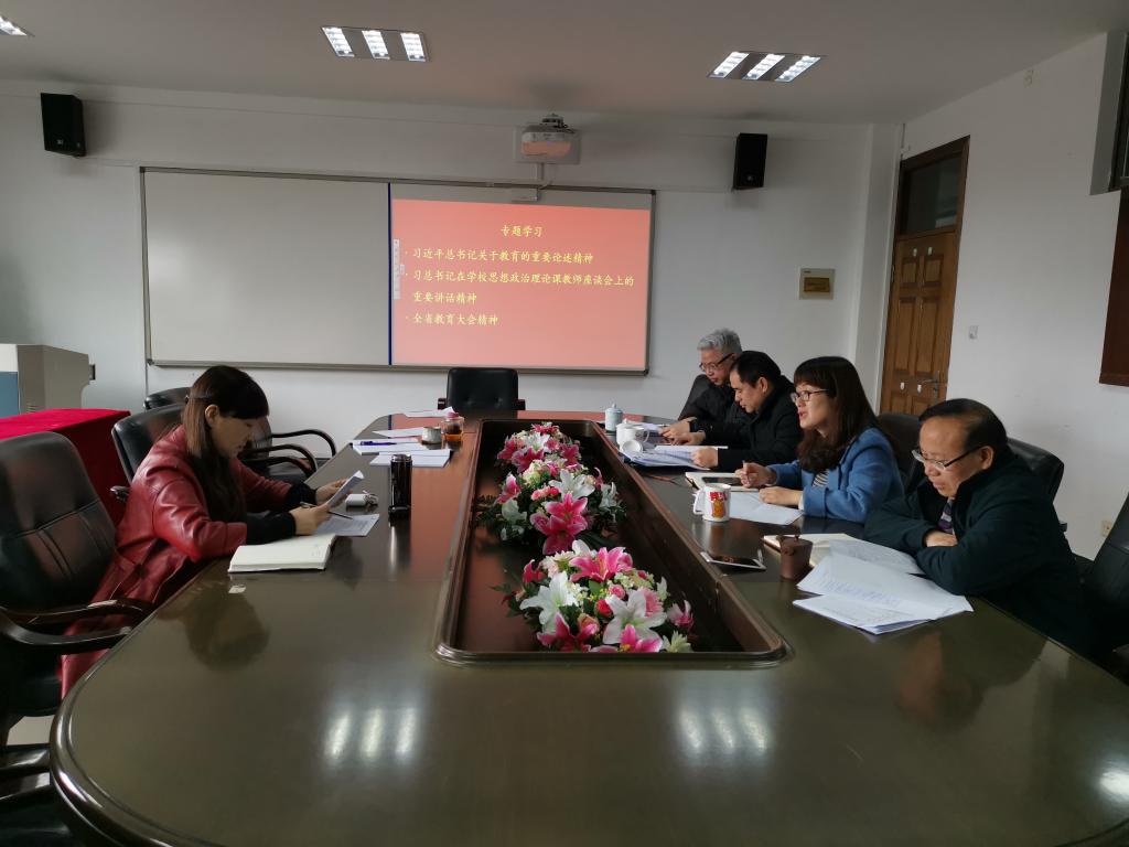 3月25日上午,澳门六合彩预测网站在南校区9A410会议室召开党委会专题学习习近平总书记在学校思想政治理论课教师座谈会上的重要讲话精神和全省教育大会精神,会议由杨立淮书记主持,学院领导班子及党委会成员出席。