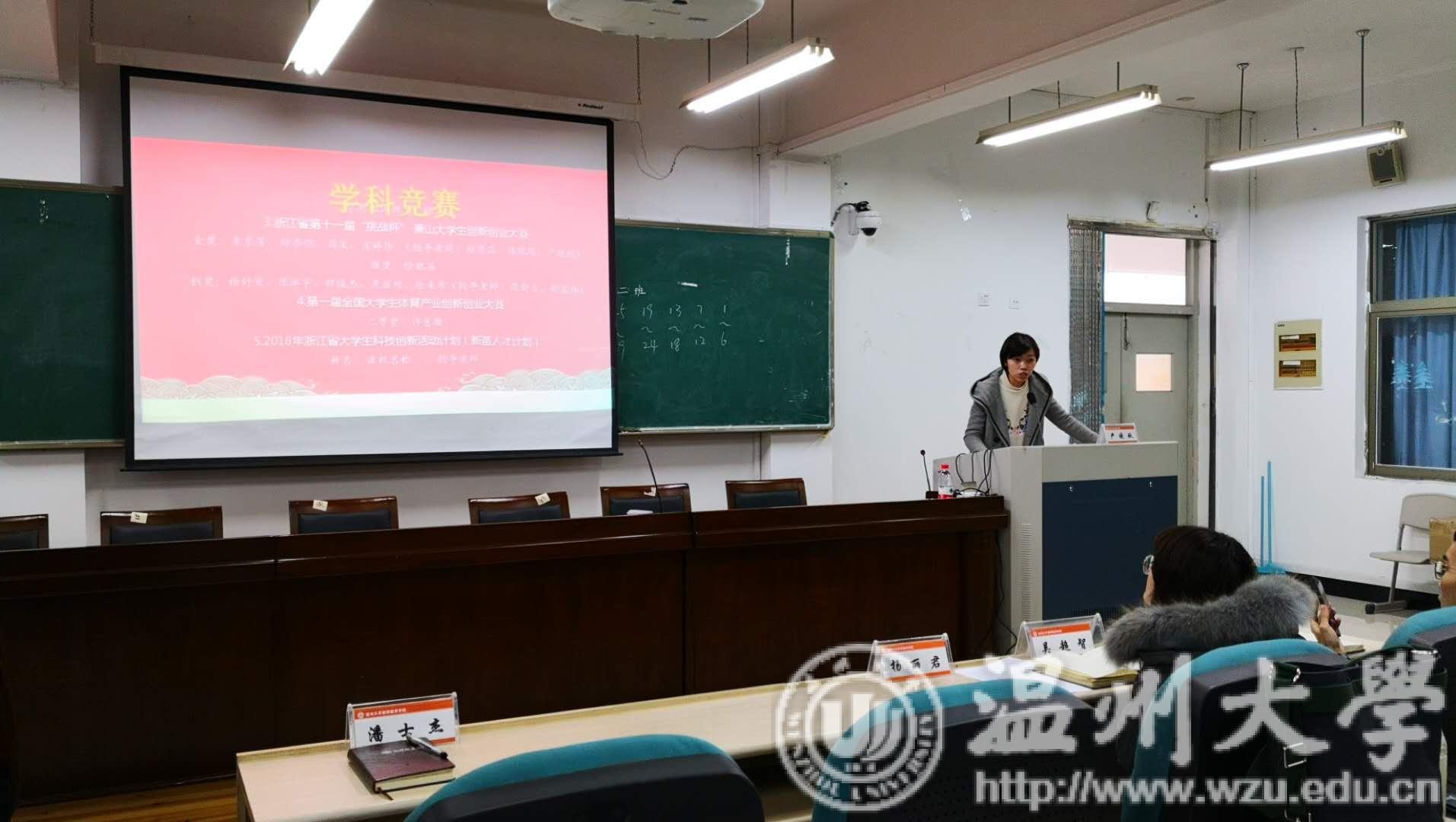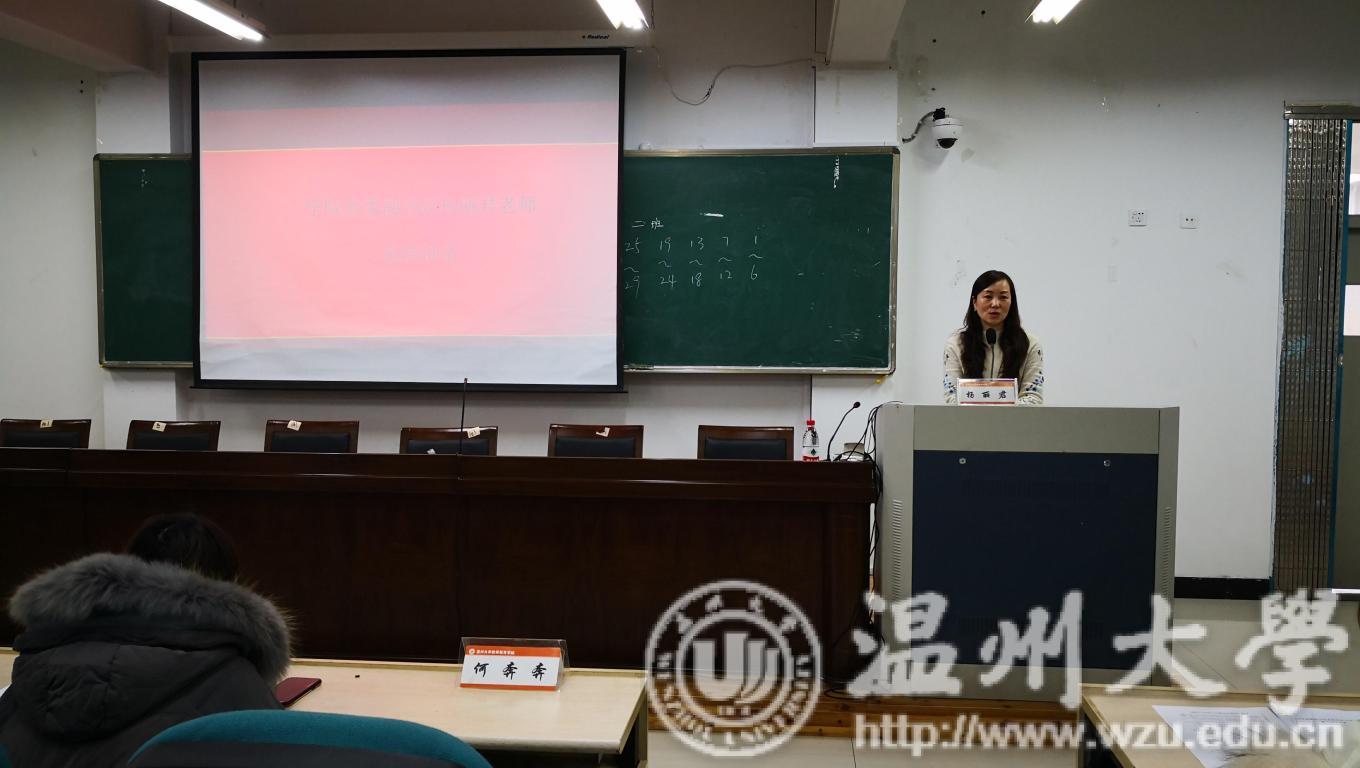 会议伊始,严晓秋老师从学风建设、荣誉成就、社会实践等几个方面对2018年学风建设情况进行简要介绍。她回顾总结了学院一年来学风建设工作整体情况,对学风建设活动取得的各项荣誉给予了充分肯定,并希望同学们能以获奖学生、班级为榜样,开拓创新,锐意进取。另外,她还就学院第二课堂的相关制度向同学们进行了详细的解读。随后,何奔奔老师向同学们详细说明了《温州大学学生考试纪律管理规定》中的各项要求,并对这一学期存在违纪行为的学生进行通报批评。他号召全院同学在期末考试中自觉遵守考试纪律,坚决杜绝各种考场舞弊行为,展现自我的真实水平。