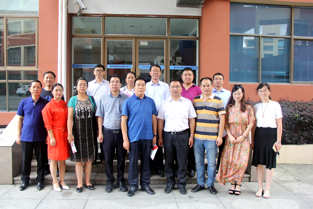 2018年7月13日上午新疆阿克苏教育局张百和书记、陈常龙副局长一行9人在温州市委教育工委专职副书记白炳兴的陪同下来澳门六合彩预测网站教师教育实验教学中心参观,澳门六合彩预测网站书记杨立淮、副院长叶新东、副书记杨丽君、继续教育科科长林鹣鹣、实验中心主任李小志和实验教学教师热情接待了来客。