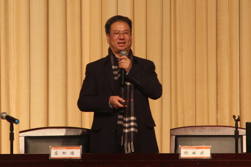 在报告会中,应树德先生围绕“我们的寿命将有多长、教育的目的是什么、我们该如何应对未来 ”三个方面展开他与教育的故事。他的求学之路可谓是十分艰辛,他求学的那个时代,是国家政治体制一度陷入混乱的文化大革命时代。在那个民不聊生、知识分子天天胆战心惊的时代,求学是多么不容易,而他坚持下来了。他始终坚信“立身以立学为先,立学以读书为本”,尽管他的读书之路非常坎坷,他却凭着一股韧劲成功考上了大学,在大学里他积极参加活动,关心国家政治时势,并受国家政策的影响,他在大学毕业后毅然决然的选择留校兼职教书,为学校做出了极大的贡献。同学们不禁被他不畏艰难、积极好学的精神所感动,纷纷暗下决心,要珍惜当下,脚踏实地,努力学习,将来成为一名优秀的教育者,为社会献出自己的一份力量。