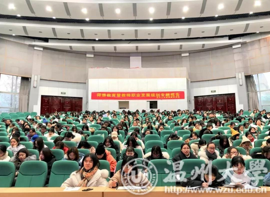 1月2日下午,学院邀请温州市第四幼儿园园长金晓群于9号楼报告厅作以《幼儿教师实现自我发展的四个关键期》为主题的师德教育暨教师职业发展规划专题报告。出席本次活动的领导与老师有教师澳门六合彩预测 党委副书记杨丽君、学前教育系副主任林琛琛、学生科副科长严晓秋以及学生科老师何奔奔。
