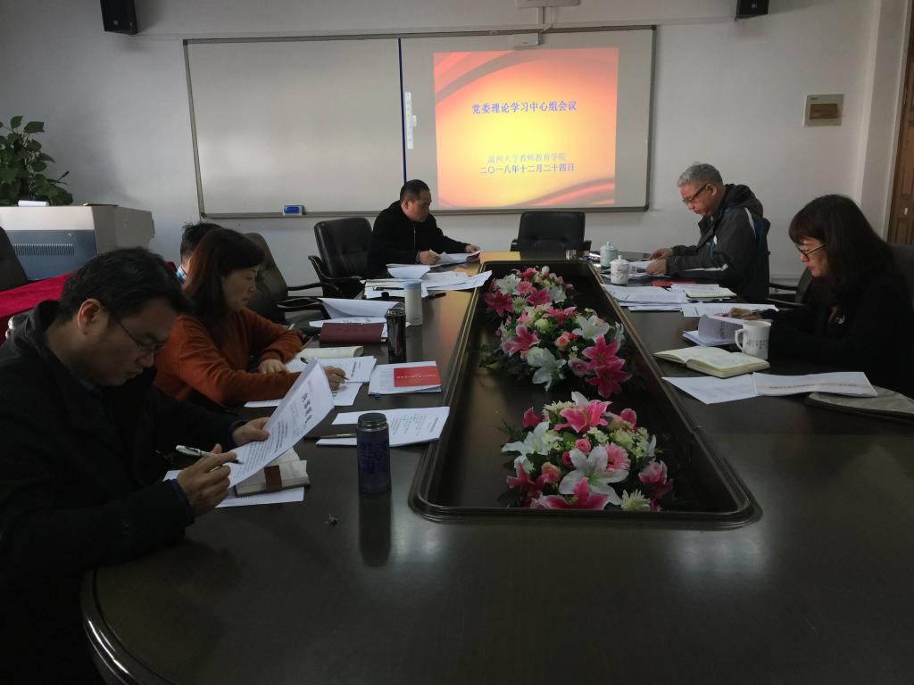 12月24日上午,澳门六合彩预测网站在南校区9A410会议室召开理论学习中心组会议,学院党政班子领导参加,杨立淮书记主持。
