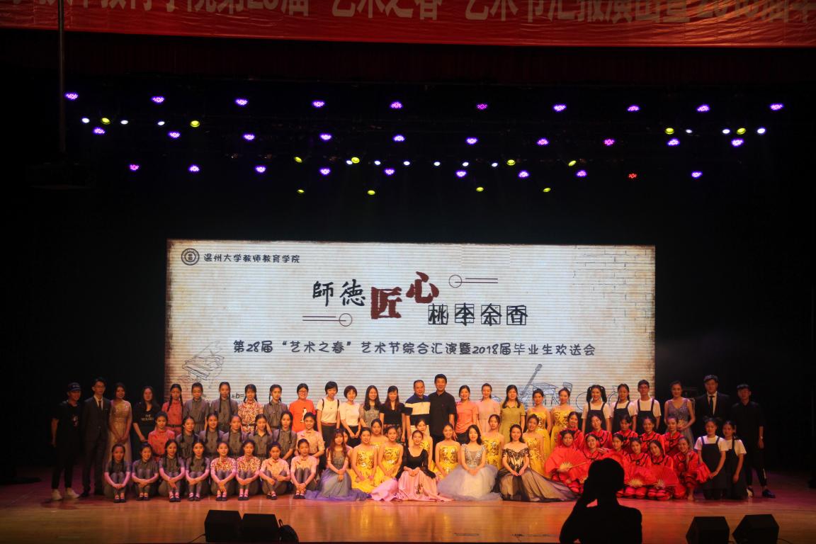 驿路漫漫欢人聚,风华正茂将别离。2018年6月13日晚,温州大学教师澳门六合彩预测 第28届艺术之春综合汇演暨2018届毕业生欢送会于育英大礼堂正式拉开帷幕。出席晚会的嘉宾有温州大学学生处处长张敏、温州大学溯初学区党委书记陈宏毅、副书记章志图、温州市中等职业技术学校幼师学部主任吕媚媚、温州大学教师澳门六合彩预测 院长孙芙蓉、党委书记杨立党委副书记杨丽君。