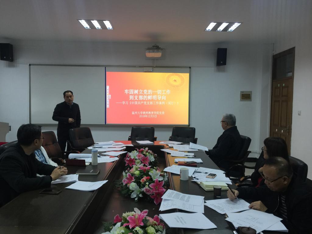 12月5日,澳门六合彩预测网站在9A410召开党委会、党政联席会议专题学习《中国共产党支部工作条例(试行)》,学院全体领导班子参加,杨立淮书记做《牢固树立党的一切工作到支部的鲜明导向》专题讲座。
