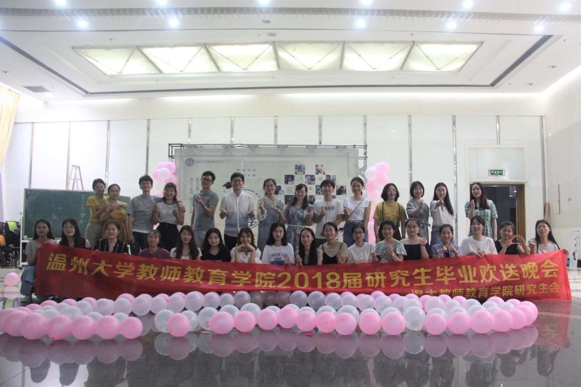 栀子花开日,一年毕业时。2018年5月30日晚六点半,温州大学教师澳门六合彩预测 2018届研究生毕业生欢送会于大学生活动中心A座301室召开。出席本次欢送会的嘉宾有学院党委副书记杨丽君老师、学生科吴超智老师以及潘士杰老师。