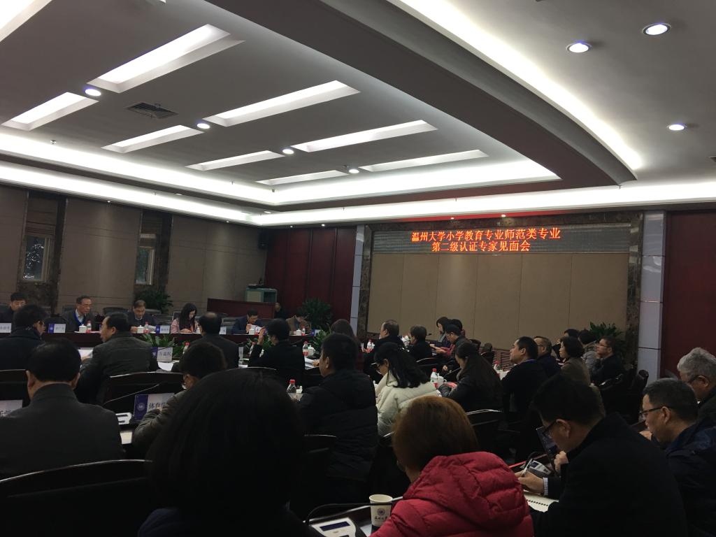 12月10日上午,小学教育专业认证专家见面会在温州大学岩松堂白鹿厅举行,会议室里座无虚席。本次见面会由温州大学副校长方益权主持,与会人员包括认证专家组全体成员、省教育评估院院长施建祥、校党委书记林娟娟、人事处等13个相关职能部门负责人、法政学院等9个师范专业学院教学副院长、教师澳门六合彩预测 班子成员及教师代表和观摩学校代表等。