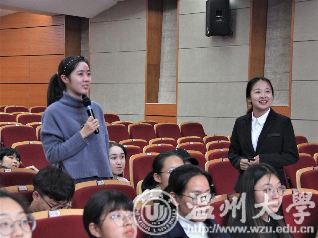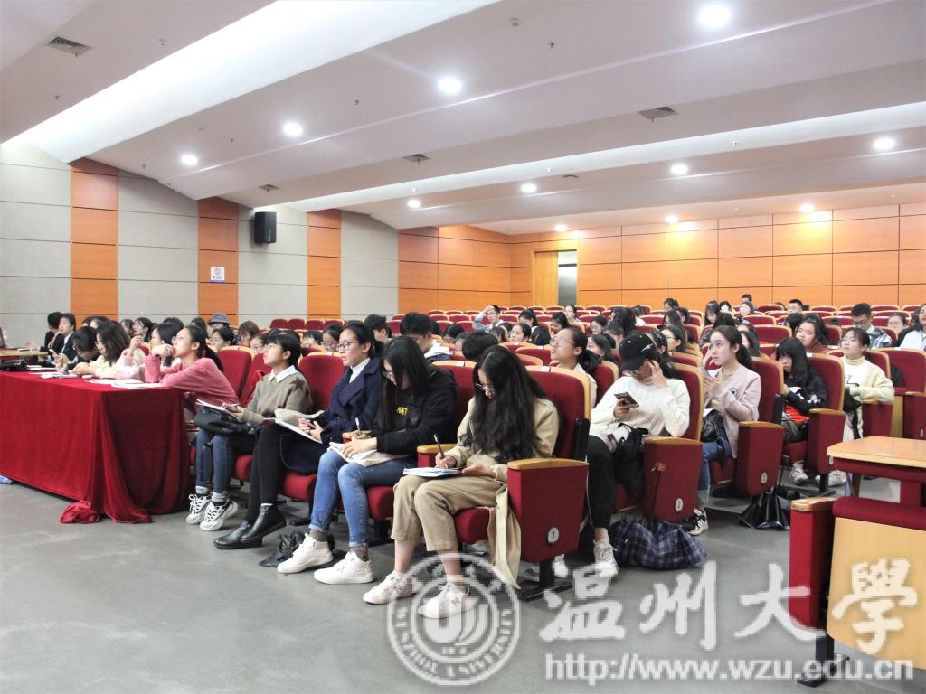 为提升团学成员的礼仪修养,提高其综合素质,2018年11月16日晚,温州大学教师澳门六合彩预测 团员骨干培训之雅系列《走进礼仪与口才的世界》讲座于南校雁山厅举行。本次讲座,由校公关部成员为同学们介绍与大学生礼仪、演讲、口才相关的知识和技巧。