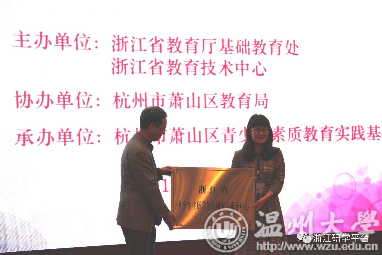会议初始,浙江省教育厅基础教育处处长方红峰、杭州市萧山区教育局副局长吴金炉出席仪式并分别发表了致辞。处长方红峰从研学旅行的价值认识、建立联动机制、加强基础建设、完善制度安排四个方面发表讲话。 萧山区教育局副局长吴金炉指出,研学旅行的开展一定要依托教育实践基地,重视研学旅行的课程建设、导师培训以及平台开发。接着,方红峰处长为温州大学“浙江省中小学生研学旅行研究与指导中心”授牌,温州大学教师澳门六合彩预测 院长孙芙蓉作为中心主任代表温州大学上台接牌。