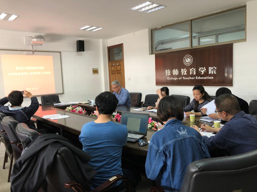 2018年4月24日上午,澳门六合彩预测网站召开2018年温州大学教育硕士专业学位授权点专项评估工作会议,学院潘玉进副院长,杨丽君副书记、教育硕士各方向负责人共10多人参加了本次会议。