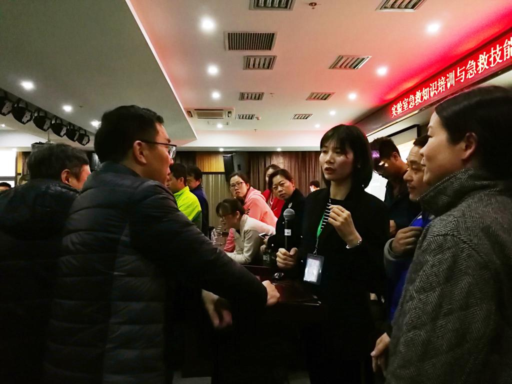 杭州科洛生物技术有限公司专业人员通过详实的案例培训了紧急救护(心肺复苏+AED)、特殊伤害处理(酸碱伤害、烧伤)、伤口处理(清创消毒、止血、伤口包扎)等内容,并现场进行了实际操作演练。教师们纷纷上前体验心肺复苏与除颤仪的具体操作方法,按照培训内容模拟急救现场,切身体验急救流程与注意事项,并就心肺复苏相关问题进行咨询交流,现场互动氛围良好。