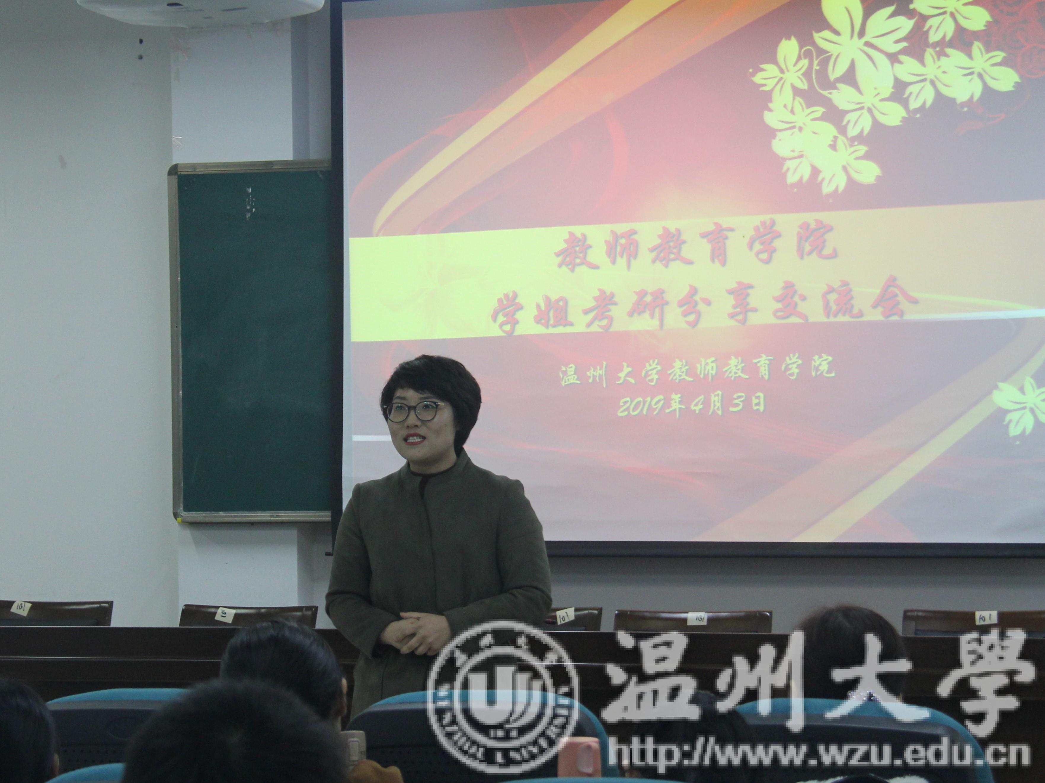为了能使考研的同学更好地掌握考研信息,及时制定复习计划,坚定考研信心,温州大学教师澳门六合彩预测 于4月3日在南9C-301开展了学姐考研分享交流会。成功考取华东师范大学学前系硕士研究生的15学前本郭千金和顺利申请伦敦大学学院硕士研究生的17专升本苏雨舟出席本次交流会,分别给同学们带来国内考研和申请国外研究生的经验分享。此外,到场的还有教师澳门六合彩预测 学前教育系系主任李娟教授,学前教育系副主任杨婧副教授,交流会由许茗珊同学主持。
