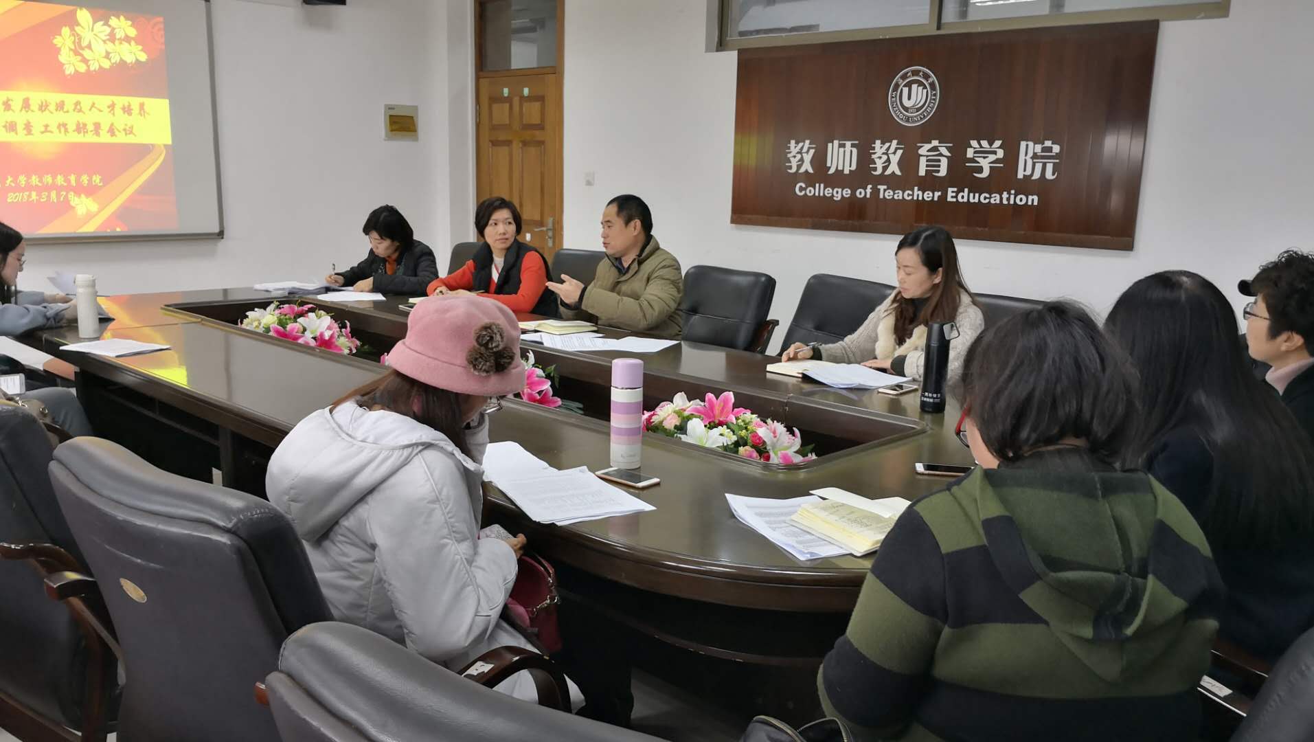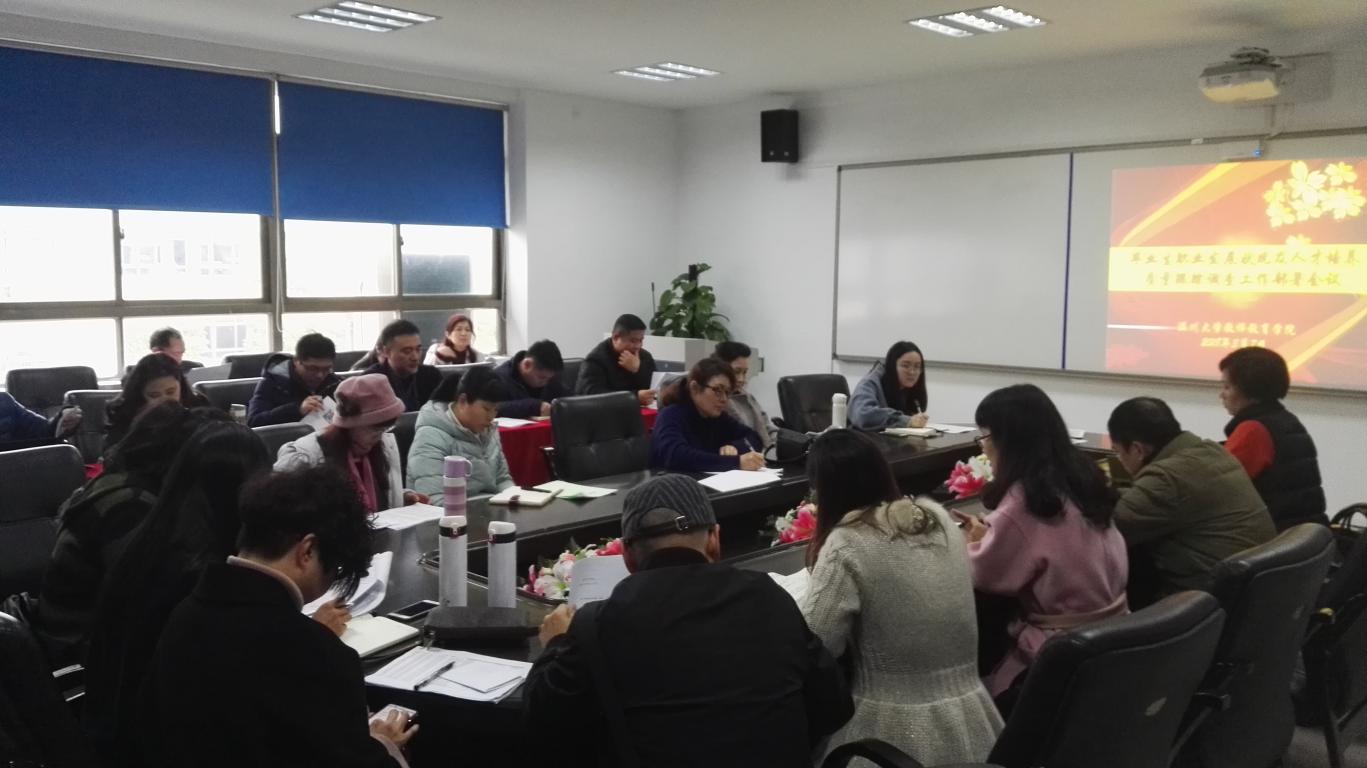 会议开始,孙芙蓉院长指出2018年是学院发展的关键一年,各系各专业应该紧紧围绕学校和学院的工作重心,努力完成学院相关工作任务部署。毕业生职业发展状况及人才培养质量跟踪调查关系到学院学科专业的各项排名,各位老师应该加以重视,及时圆满的完成调查工作。