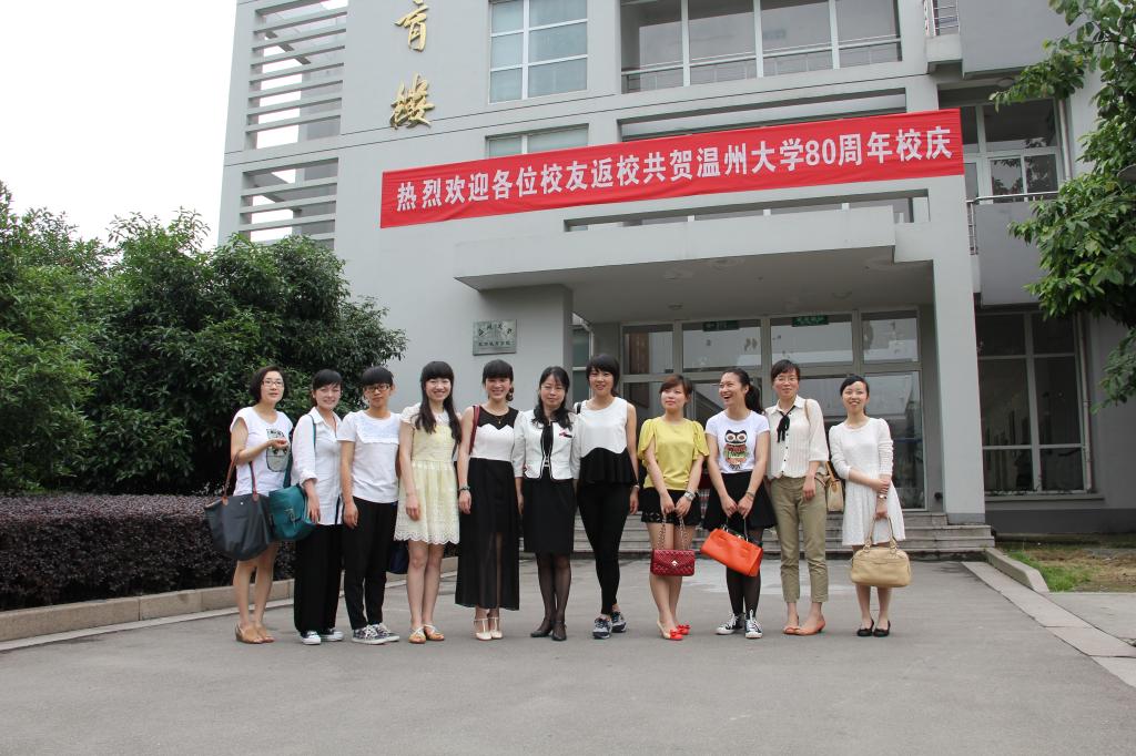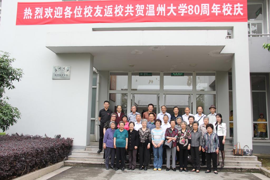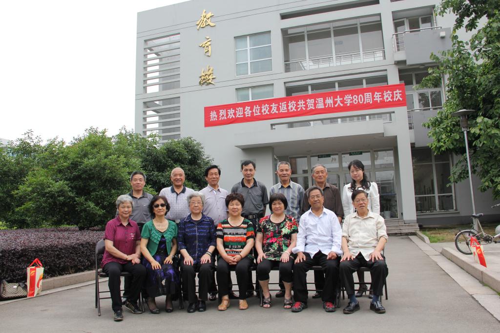 这80余位校友中,有已经步入古稀耄耋的老人,也有刚刚毕业意气风发的青年。特别是40多位古稀校友,他们都是五十年代温州师范学校成立初期的毕业生,这次借返回母校祝贺校庆的机会,重温自己的青春支路。他们一踏进茶山北校区教育楼的大门,就激动地说:“我们是经历了从温州师范学校到温州大学这一段发展历史的见证者啊!”刚毕业不久的年轻校友则表示:“毕业后再次返回母校,才更体会到当年学生生活的幸福。”校友们亲热地聚在一起,在教育楼前拍摄了合影。