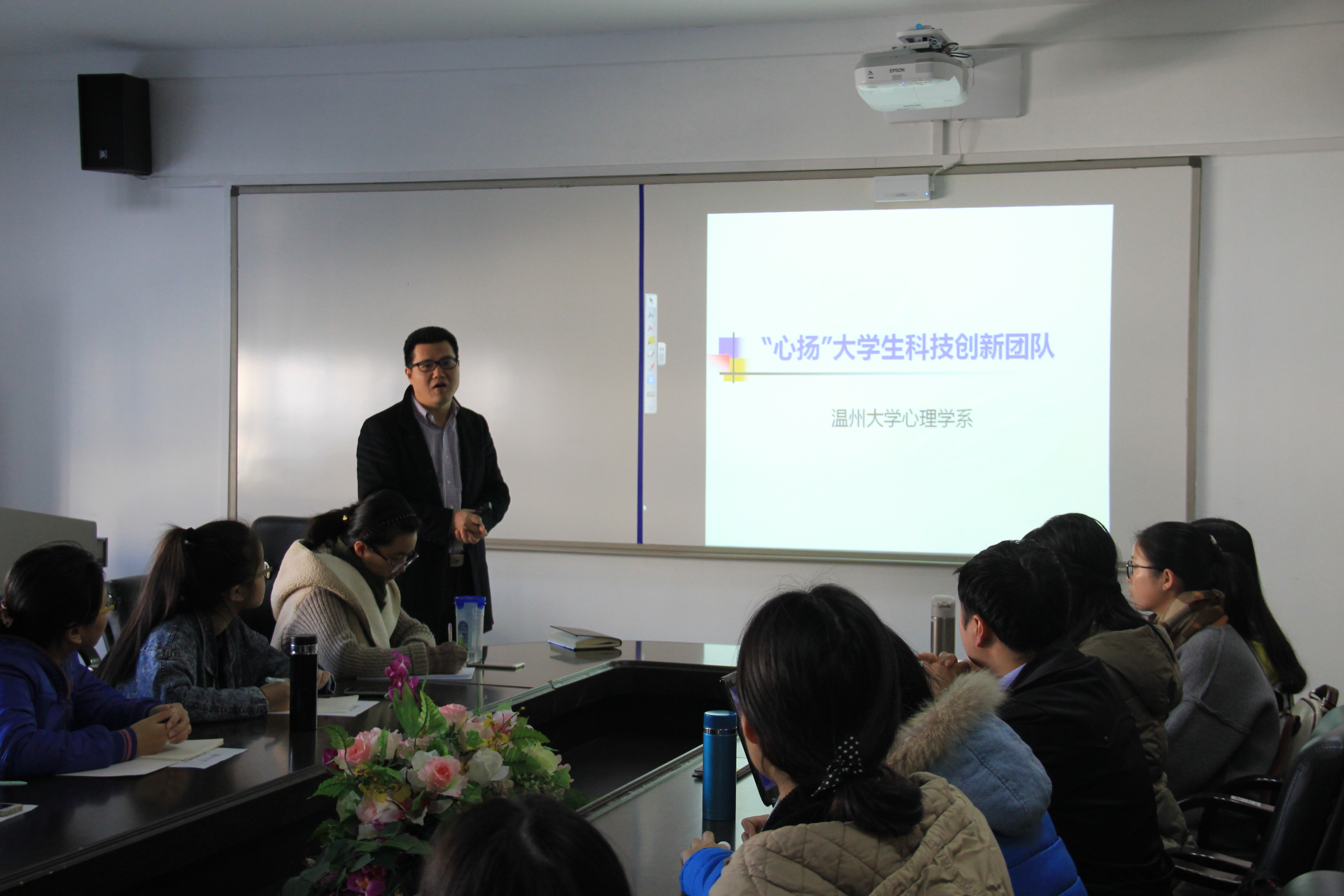 为迎接即将到业省新苗创新创业计划项目,12月11日上午8:30,心扬学生科技创新团队即心理学系大学生科技创新团队活动在教育楼9A410隆重开展,本次活动由心理系书记陈美芬老师主持,同时邀请了澳门六合彩预测网站胡瑜院长为14级科研团队新成员做选题指导,胡瑜院长耐心全面的讲解使得同学们收益良多。