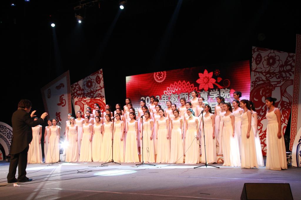 本次晚会分为博、爱、雅、艺四个篇章,在每个篇章中,精美的表演节目让老师们同学们纷纷称赞叫好,由11学前中专2班带来的开场秀《CUPS》,热闹欢腾,激动人心;由院语言艺术工作坊表演的诗朗诵《教师梦》,表达了师范生们对教师这一职业的热爱,声情并茂;由儿童剧工作坊奉献的话剧《出发》,表达了对未来的美好向往,振奋人心;由合唱工作坊带来的大合唱《走进美丽,走进神奇》等,歌词温馨,其乐融融。澳门六合彩预测网站乐清中等幼儿师范教学点的同学们带来了鼓舞《中国龙》和表演唱《苗岭连北京》,他们的舞艺和唱功让现场观众为之倾倒,虽然她们是澳门六合彩预测网站年纪最小的学生,但是她们的基本功和舞台表现力不可小觑。